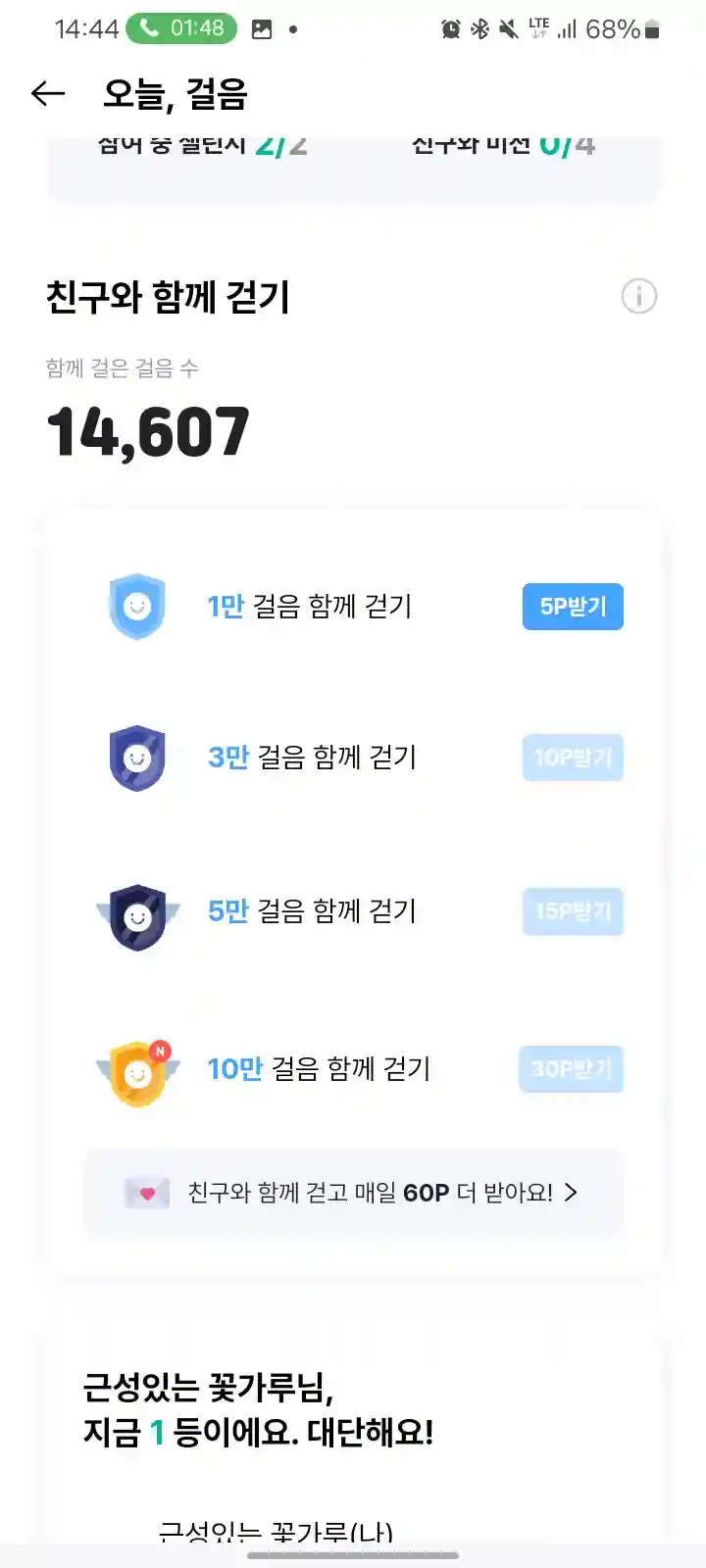 매일 걷기만 해도 현금처럼 사용할 수 있는 포인트를 모을 수 있어요.